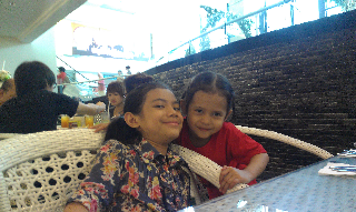 Nak hilangkan penat budak2 ni kami pergi the garden la. Ada set lunch yg murah. Rembat je la. Semua set come with ice lemon tea, salad n pumpkin soup. Naqib punya hirup la sup tu. Dia order fish n chip. Sama dgn elly. Nashwa order chicken chops. Alang ke order oglio. Semua potion besar. Mmg kena share. Mujur saya tak order apa2. Sebab boleh agak anak makan tak habis. Nanti membazir. Bukan kedeks. Tapi jimat.